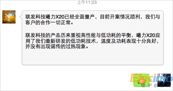 但盡管此負責人極力否認曦力X20發熱問題的存在,但部分行業人士與消費者并不買賬,這主要是因為當年高通出現過熱門時也曾經極力否認問題存在,不過擺在眼前的事實是無法否認掉的。此外,部分專業人士認為此次聯發科出現發熱問題的芯片與當年為驍龍810代工的技術如出一轍,這就更加難以令人們信服聯發科的表態。