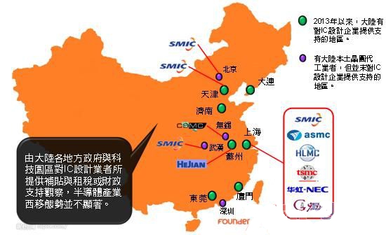 較值得注意之處在于,這7座城市全數都在沿海省份,其中天津、上海、蘇州內都有晶圓代工廠,大連、濟南、廈門、東莞(鄰近的深圳也有方正科技6寸晶圓代工廠)則是終端產品制造中心,能夠就近為系統客戶提供服務。事實上,無錫市亦有對半導體業者提供補貼與支持,但該方案已于2012年11月終止,未來是否會對半導體業者提出新的補貼方案則還要再觀察。